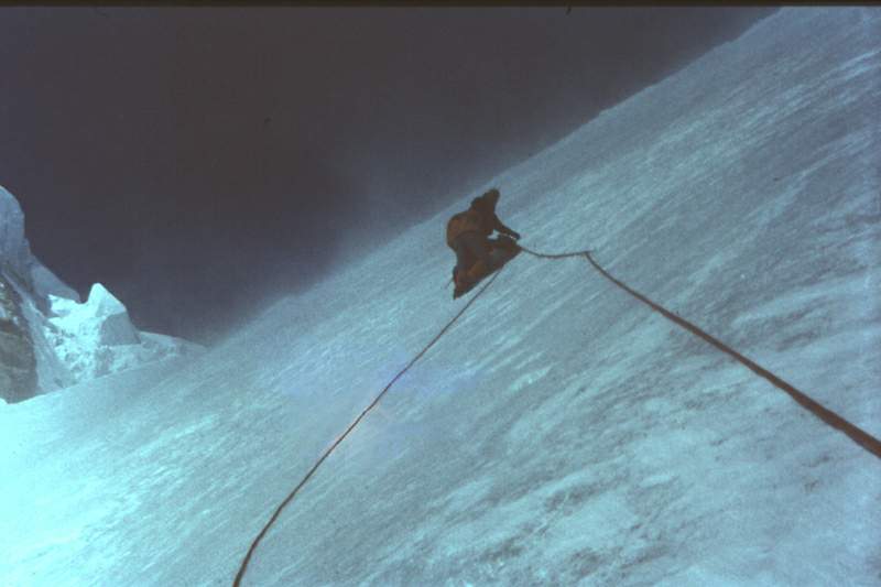 Filar Narożny 1971. VI dzień - w wichurze na grani Peuterey. Fot.T.Piotrowski