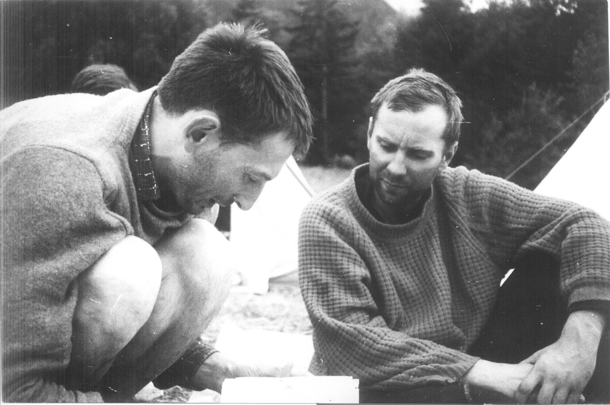 Obóz w Chamonix 1965 r. Z lewej Jurek Warteresiewicz [Dziurek], z prawej J. Kurczab. Fot. A.Zawada