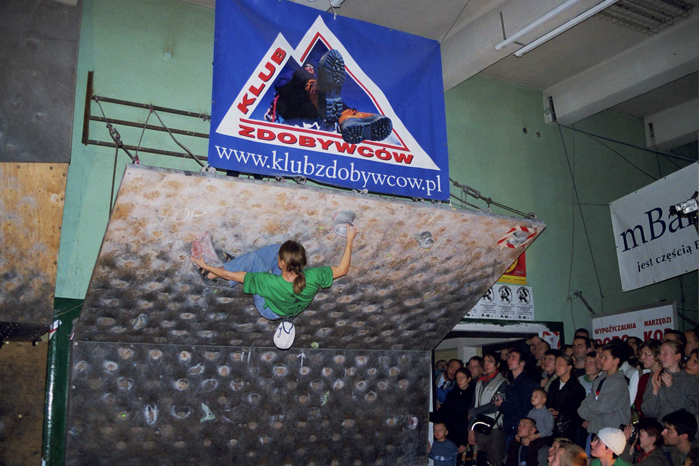 Zawody w boulderingu o Mistrzostwo Łodzi 2003. W akcji zwyciężczyni Edyta Ropek
