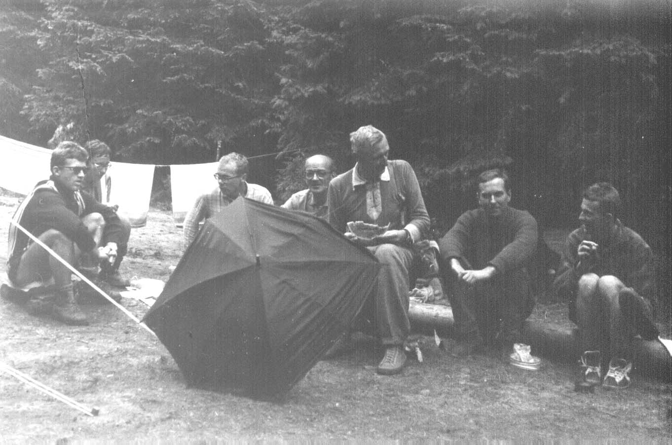 Od lewej Maciej Pogorzelski [Bąbel], pierwsza żona Adama Szymanowskiego, Wojciech Biederman, Adam Uznański sen., Eugeniusz Piątkowski, Janusz Kurczab, Andrzej Kuś.