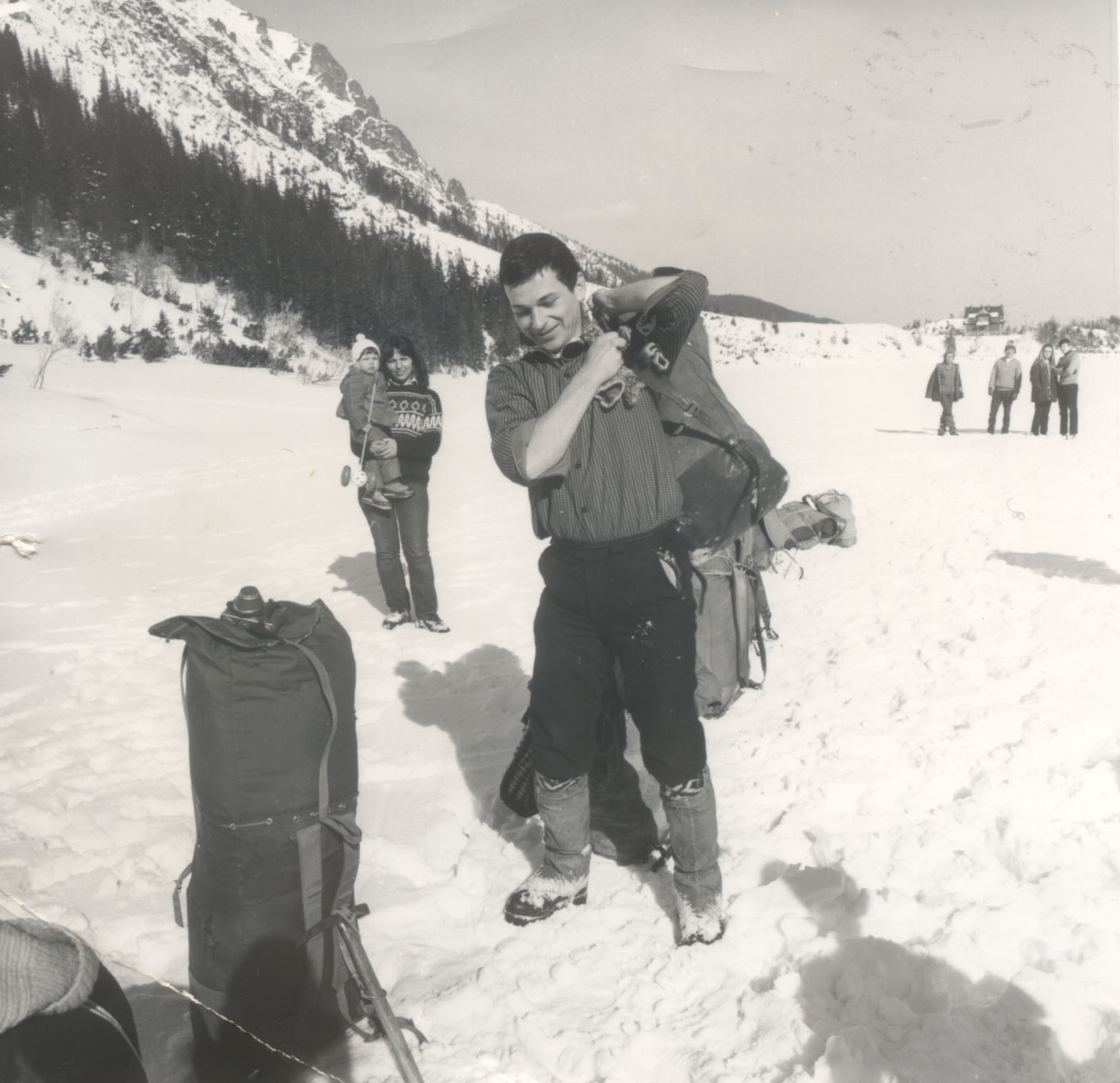 16. Morskie Oko 1971 rok – Genek Chrobak, z tyłu z lewej Grażyna Jaworska-Chrobak z córką Joasią