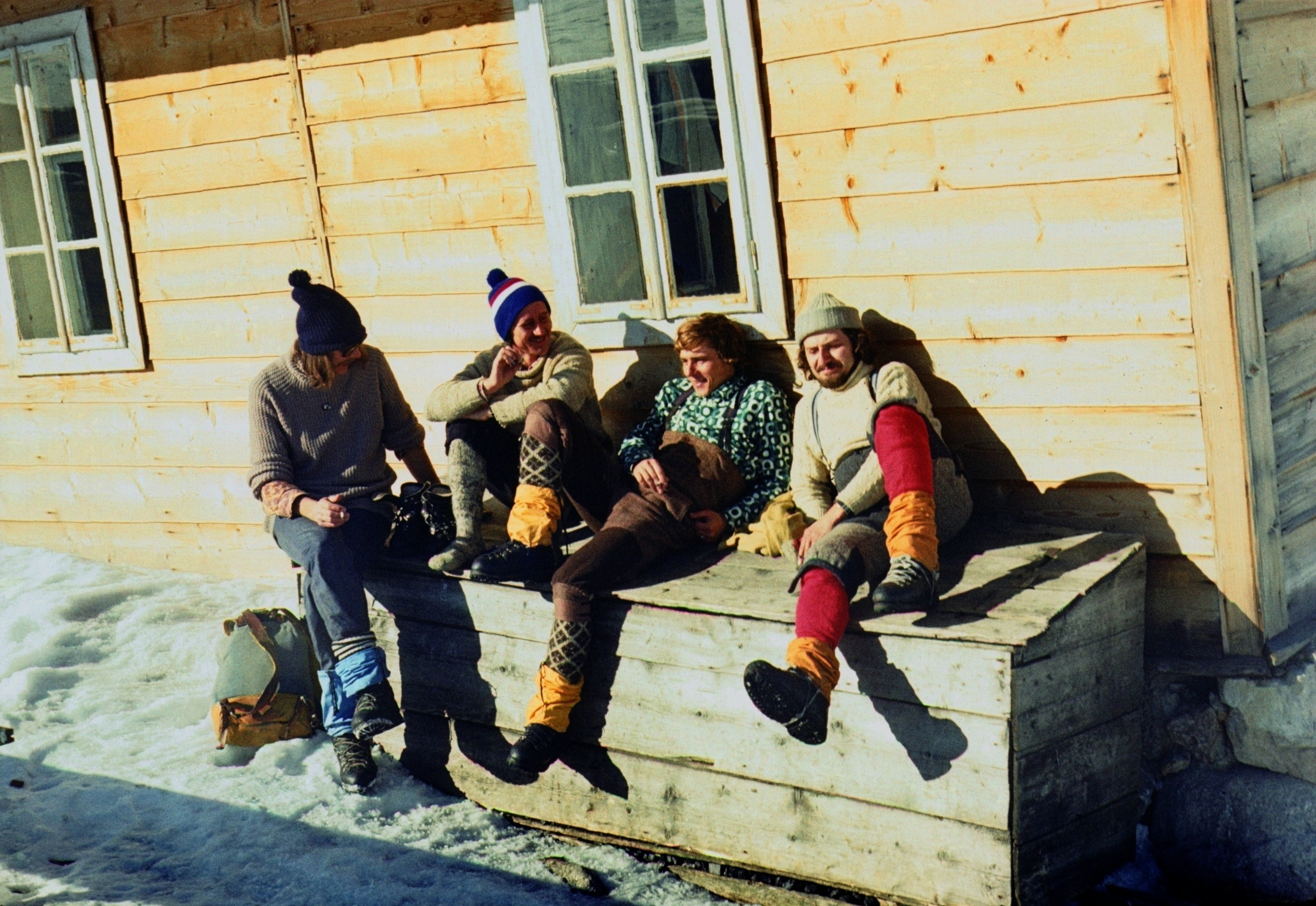 Grupa taterników z Bydgoszczy przy Murowańcu, od l. H. Kałuzny, Jerzy Krajnik, M. Kmieckowiak i A. Pierzyński.