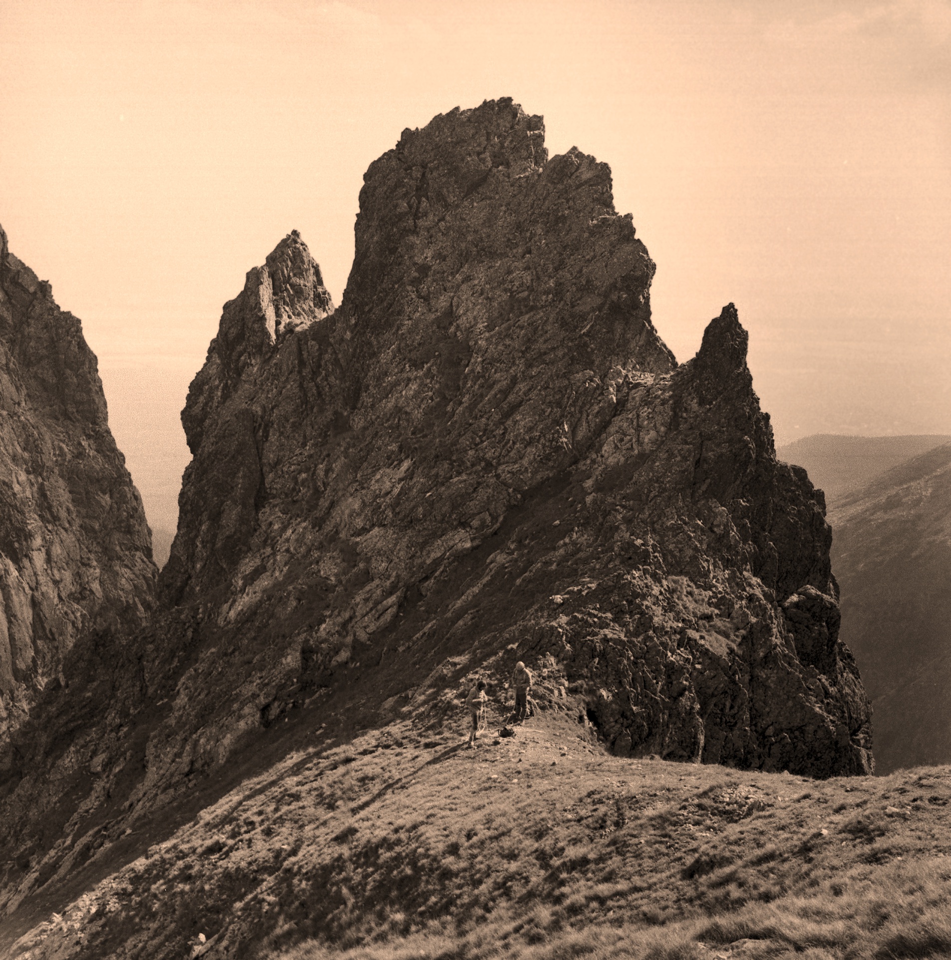 M. Kmiećkowiak i A. Pierzyński na Niżnim Granackim Przechodzie po przejściu zach. ściany Małej Granackiej Baszty.
