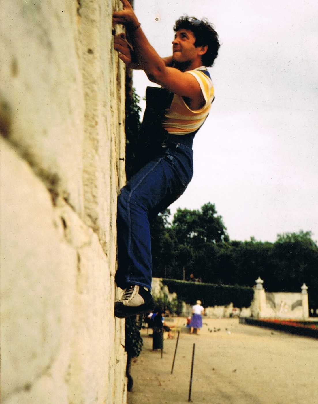 16 Bouldering w Paryzu, Ogrod Tuileries 1981,Scianka Kloszardow, photo Jola Skiba