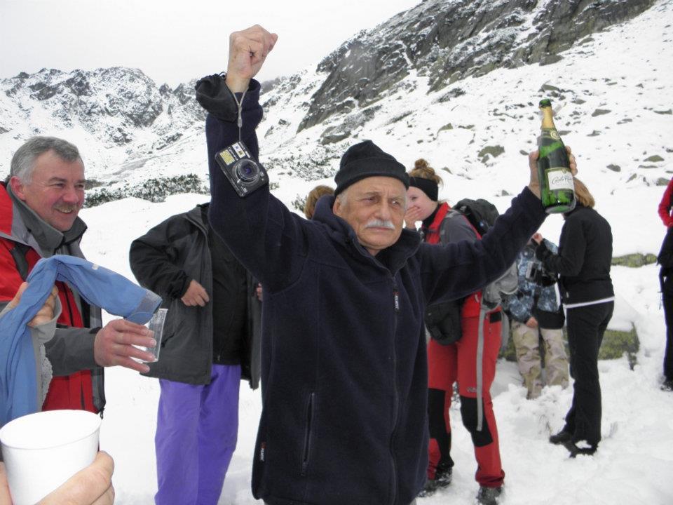 Dolinka za Mnichem. Marek Janas celebruje urodziny sprzed kilku dni i stawia szampana.