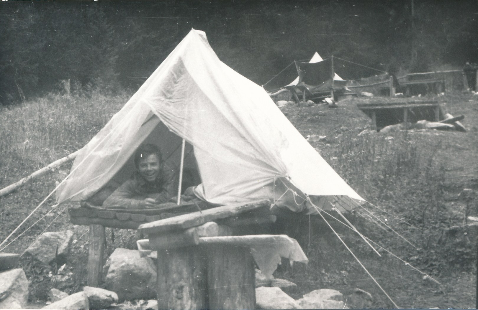 Ten namiot byl lepszy ale udalo z Bablem nam sie go spalic.Mimo trzech lat roznicy mina pozostala mi taka sama 1970.