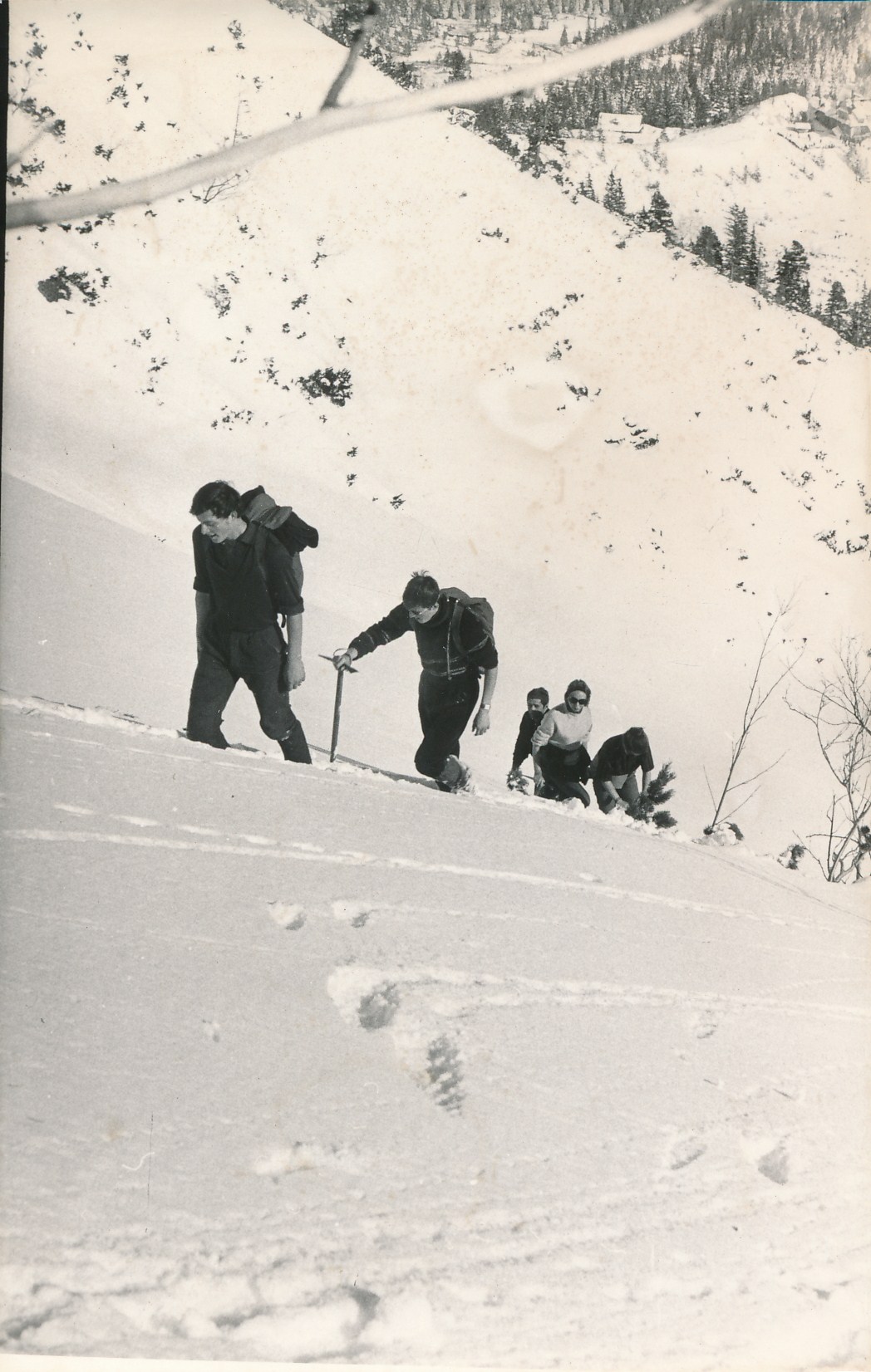 Poniewaz torowalismy, szybko zostalismy dogonieni.Sadze ze tego dnia bylo lawiniasto i pojscie do dolinki za Mnichem bylo jedyna rozsadna alternatywea dla siedzenia w schronisku