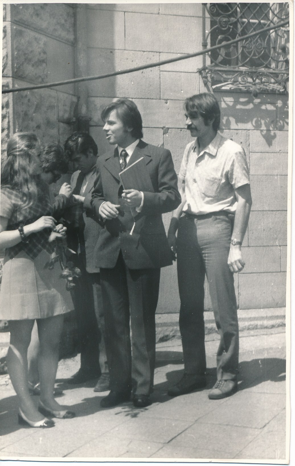 Absolutorim - po prawej Grzesiu Fligiel,z tylu nieco zasloniety moj przyszly szwagier i lesniczy TPN Marian Kaczmarczyk, ktory swoja kariere wspinaczkowa zakonczyl na kursie w Betlejemce, po lewej Danusia moja siostra.