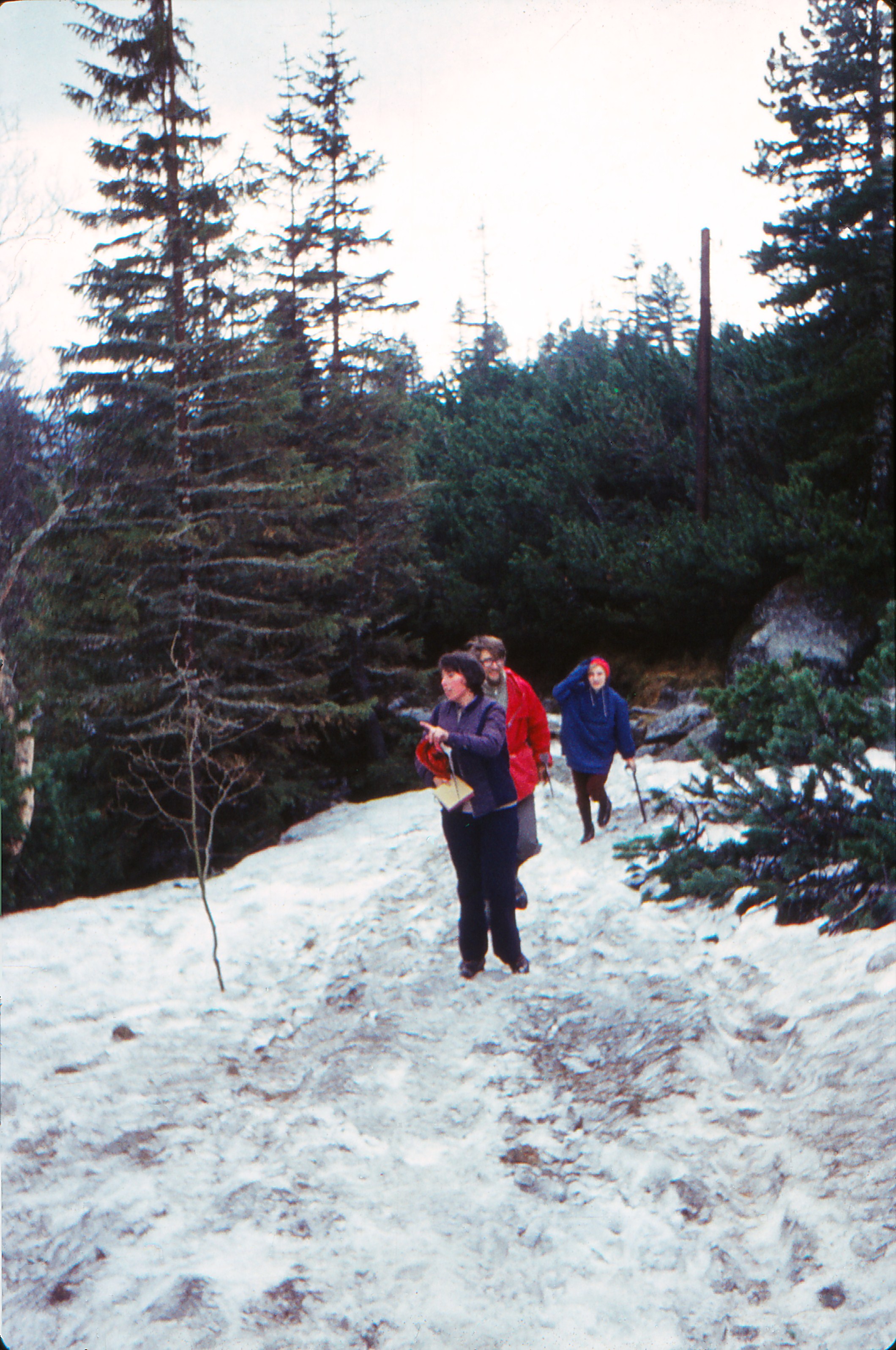 Jeszcze przed poludniem ruszylismy pod gore,ja z Czokiem targalem sprzet wspinaczkowy i line - na zdjeciu Ewa Bobrowska i Gibinscy.