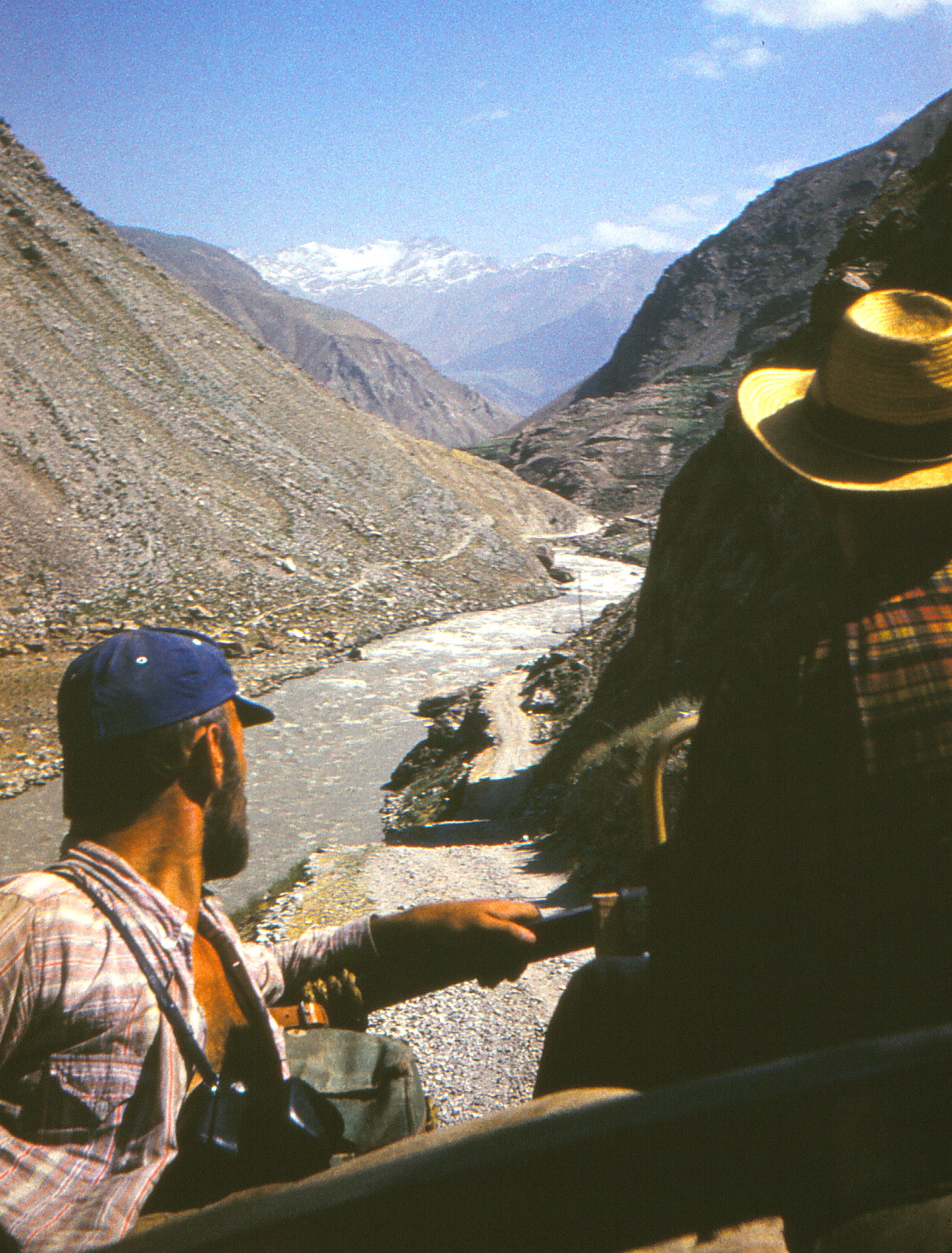 Pierwsze widoki na Hindukusz - na pierwszym planie Janusz Baranek i kapelusz na lysinie Lisa.