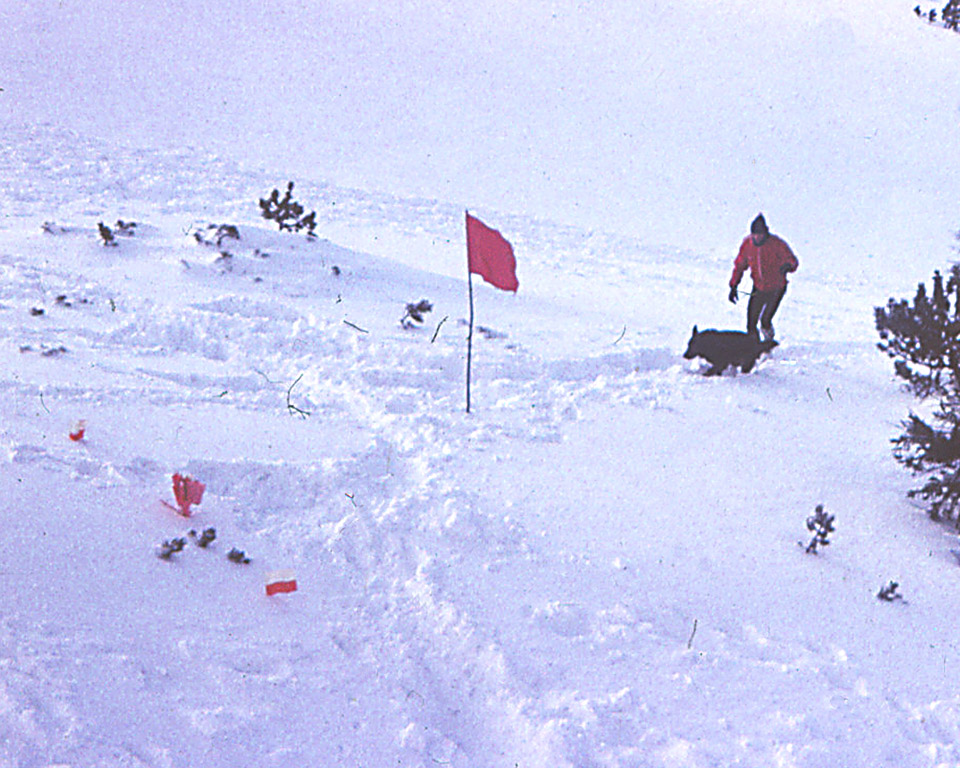 80 / Zimowy kurs instruktorski Hala Betlejemka 1976 lawinowy pies Cygan z GOPR w akcji