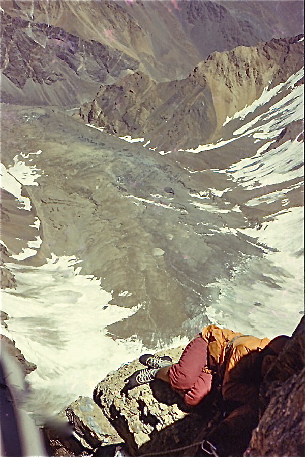 po biwaku odrobina skalnej polki dala bobkowi strzelskiemu odrobine slonecznego ciepla , no to juz jest gdzie 2000 metrow nad lodowcem !