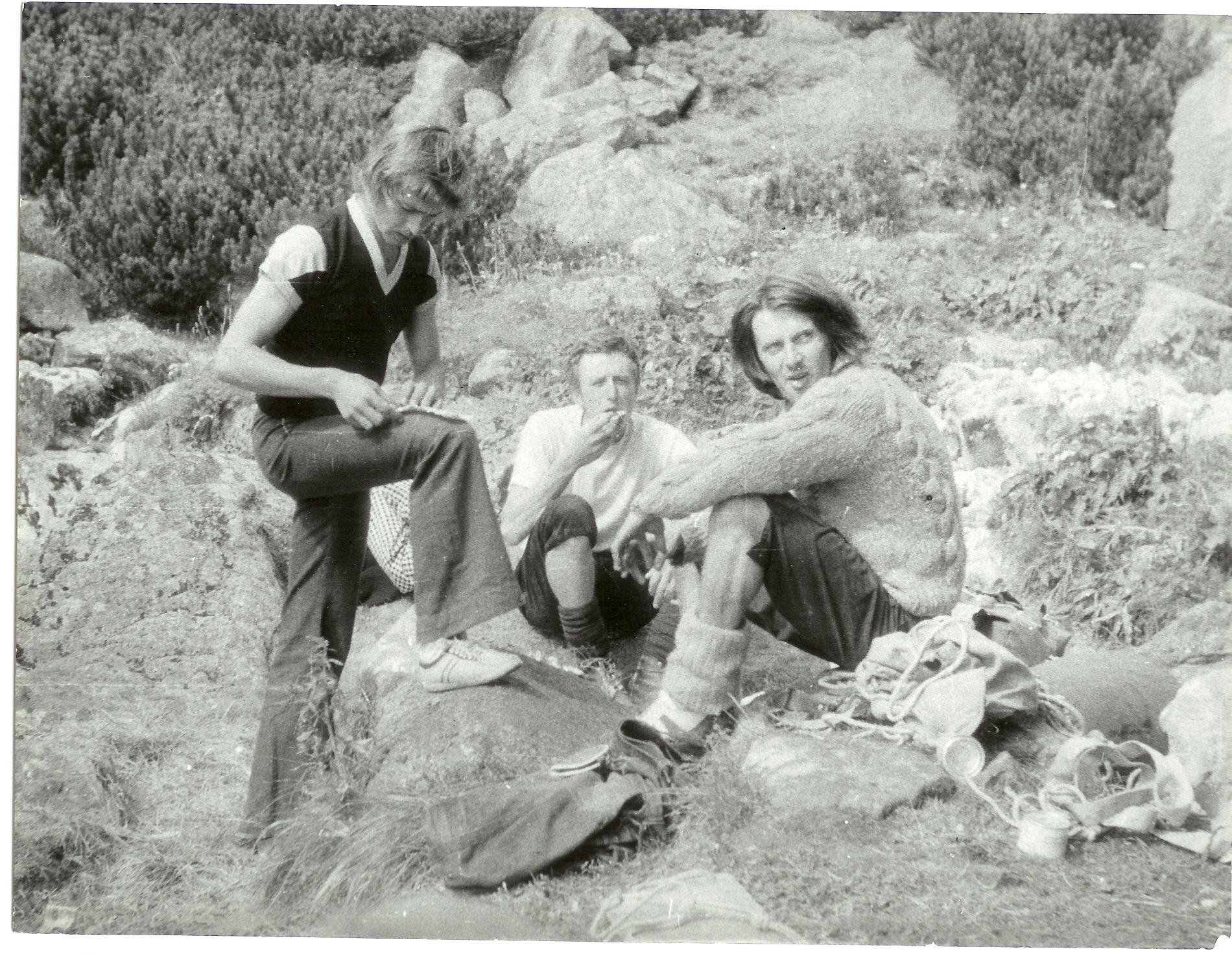 Andrzej Pawlik , Zdzichu Dudrak , Wojtek Kosiński /ten od rysy Kosińskiego na Mnichu/ - Dol. Wielicka 1973 r.
