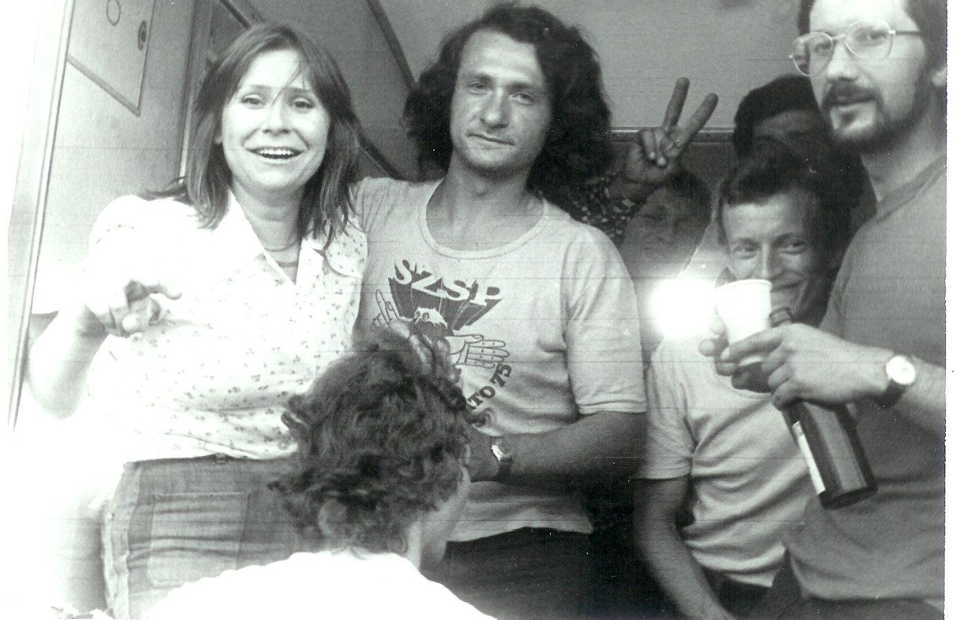 Wyjazd do Chamonix 76.Mysza Domańska,Urbano,Leszek Kozakiewicz,Andrzej Klonowski.Z tyłu v-kę pokazuje Kostek Miodowicz.