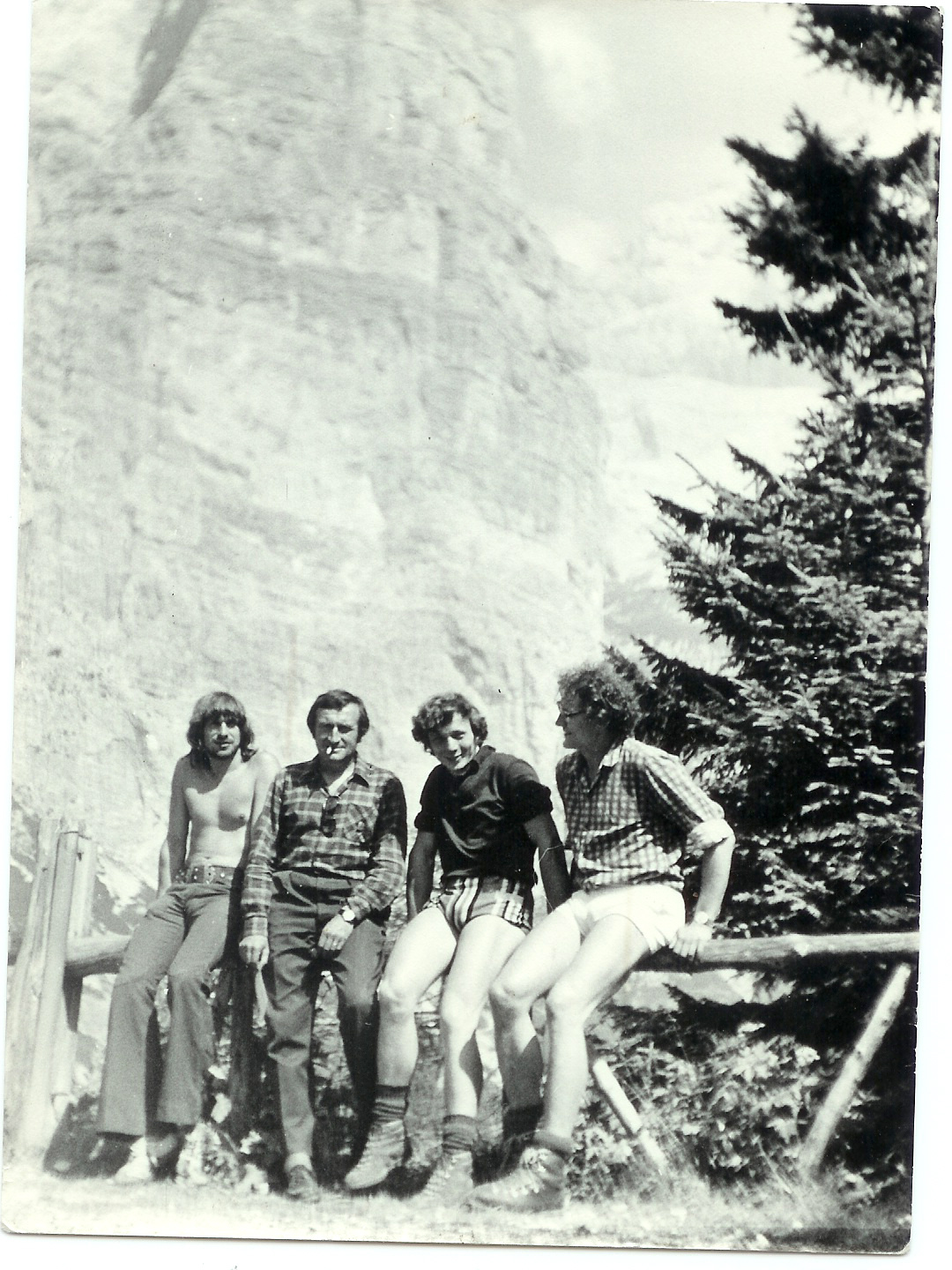 Rico Malczyk , G. Livanos , Wicio Sas-Nowosielski , Jerzy Kalla - Dolomity 1973.Zdjęcie J.Łabęckiego