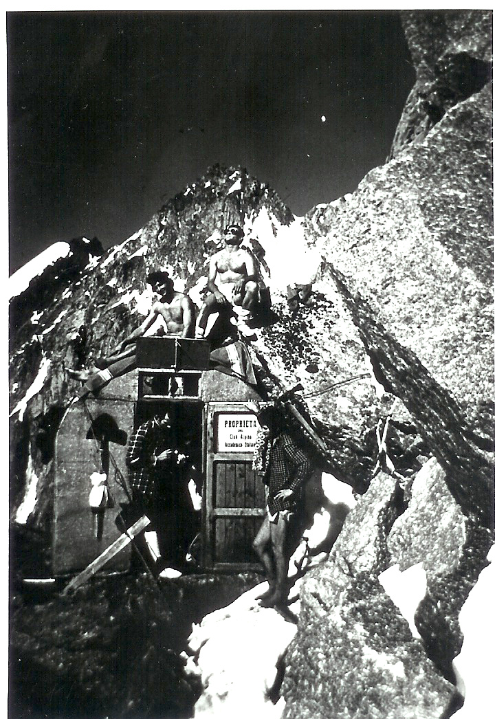 Alpy 75-Zając,Laskowski,Pietrzak,Myszkowski w schronie przed przejściem dr.Harlina na filarze Brouillard.